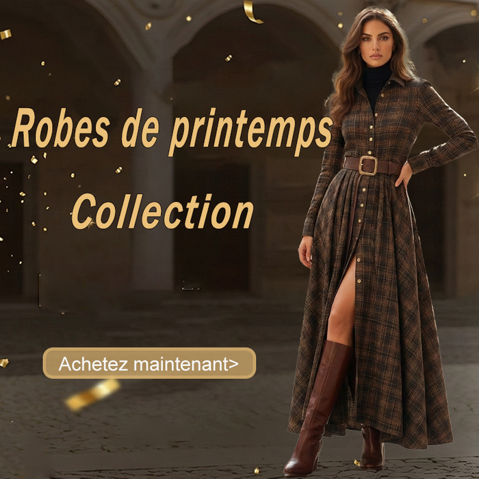 Cocolii robe longue en carreaux suedine poches ceinture col montant manches longues femme décontracté vintage cérémonie