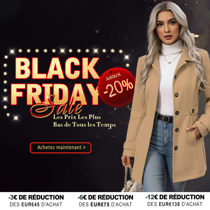 Cocolii mi-longue manteau en laine ceinture v-cou avec poignets en fausse fourrur manches longues femme élégant hiver veste