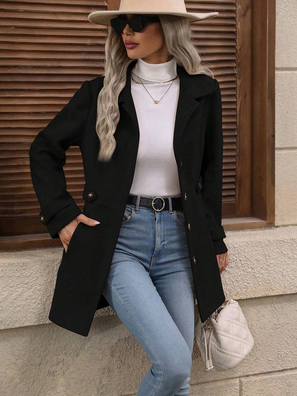 Cocolii mi-longue manteau élégant femme hiver chaud coupe-vent avec ceinture ajustable col rabattu boutonné idéal quotidien