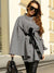 - Conçue avec un motif pied-de-poule classique, cette cape offre élégance et style chic. La cape est faite de tweed et de fibre de polyester, qui offre une bonne rétention de la chaleur et une bonne durabilité, ce qui la rend adaptée pour l'automne et l'hiver. Le design de la cape adopte des manches chauve-souris et une coupe longue, avec un col rond, à la fois tendance et confortable. La conception à lacets à la taille ajoute non seulement à la superposition globale, mais vous permet également d'ajuster le serrage en fonction des préférences personnelles pour montrer différents styles vestimentaires. Ce poncho convient à de nombreuses occasions, qu'il s'agisse de déplacements quotidiens ou de réunions décontractées, il peut être facilement porté. Sa coupe ample et son design ample surdimensionné offrent non seulement une expérience de port confortable, mais modifient également bien la forme du corps, montrant un tempérament décontracté mais raffiné. Le design général est simple et décontracté, conforme aux besoins esthétiques des femmes urbaines modernes, et constitue un article de mode indispensable en automne et en hiver.