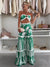 • Cette tenue présente des motifs floraux en vert et blanc et est unique et vibrant. Le haut est sans bretelles avec des bords ondulés qui montrent une ligne élégante. Le fond est un pantalon large à lames à taille haute, qui adopte également la conception du bord ondulé, et la forme globale est lisse et en couches. Cette tenue est parfaite pour l'été, que ce soit une fête, des vacances ou une occasion décontractée quotidienne.