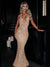 - Cette robe est faite de fibres élastiques spandex et de tissu en fibres de polyester, qui ont une bonne élasticité et un bon confort. Le design adopte une coupe slim pour mettre en valeur la beauté des courbes des femmes. La jupe est de longueur moyenne, adaptée au printemps et à l'été. La décoration en paillettes fait briller toute la robe sous la lumière, ajoutant une sensation de beauté. Le design dos nu et le grand col en V montrent le côté sexy, tandis que la conception de la bandoulière de style licou ajoute une sensation d'élégance. La taille haute allonge les lignes des jambes et la jupe en queue de poisson ajoute de la féminité et du charme. Le style général est unique et convient aux occasions formelles telles que les mariages, les robes du Nouvel An et les danses, ainsi qu'aux lieux à la mode tels que les boîtes de nuit.