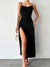 - Cette robe est élégante et élégante. Sa caractéristique est qu'il adopte un bandoulière mince et un design à col en V profond pour montrer le sexy et le charme des femmes. La conception à fente élevée augmente non seulement la dynamique globale, mais rend également les lignes de jambe plus longues, montrant le charme en marchant. Cette robe convient à une variété d'occasions, qu'il s'agisse d'un dîner ou d'un événement formel, et peut être facilement contrôlé. En termes de tissu, cette robe est en matière douce et élastique, qui est confortable à porter et a un bon drapé, qui peut bien s'adapter au corps et montrer la beauté de la courbure des femmes. De plus, les tons noirs classiques le rendent plus polyvalent et peuvent être associés à une variété d'accessoires et de chaussures pour créer facilement différents styles. Dans l'ensemble, cette robe, avec son design unique et ses tissus de haute qualité, combine parfaitement l'élégance et la mode, est un article indispensable dans la garde-robe d'une femme.