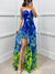 Cocolii robe longue imprimé à fleurie tulle fendu le côté bustier dos nu sans manches femme élégant de plage