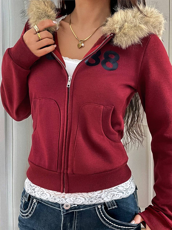- Ce sweatshirt présente un design d'impression numérique classique associé à une douce col de fourrure, mettant en valeur une combinaison parfaite d'élégance et de style rétro. La conception à fermeture éclair avant assure un port facile et des poches latérales offrent un espace de rangement pratique. Un ajustement moulant souligne les courbes du corps, le rendant idéal pour des tenues décontractées quotidiennes ou dans le style universitaire. Fabriqué à partir de polyester de haute qualité, il est chaud et confortable, parfait pour les saisons automne-hiver. Que ce soit avec des jeans ou des jupes, il crée facilement une allure à la mode.