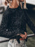 - Ce T-shirt a un design à manches longues et peut être porté en hiver, au printemps et en automne. Le tissu est principalement composé de fibres de polyester, qui ont une bonne élasticité et résistance à l'usure, sont confortables à porter et faciles à entretenir. Le T-shirt est décoré de paillettes, ce qui ajoute une touche de mode et d'élégance, le faisant se démarquer dans les situations décontractées ou de fête de tous les jours. Le design dos nu ajoute une touche sexy et unique au look général, ce qui le rend adapté aux femmes qui recherchent la mode et l'individualité. Le design du col rond est simple et élégant, facile à assortir avec différents styles de vêtements. Dans l'ensemble, ce T-shirt est à la fois à la mode et pratique, adapté à diverses occasions et constitue un excellent choix pour rehausser votre charme personnel.