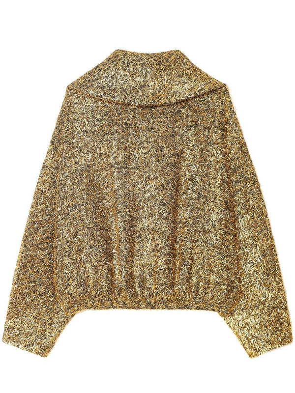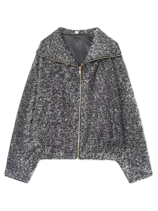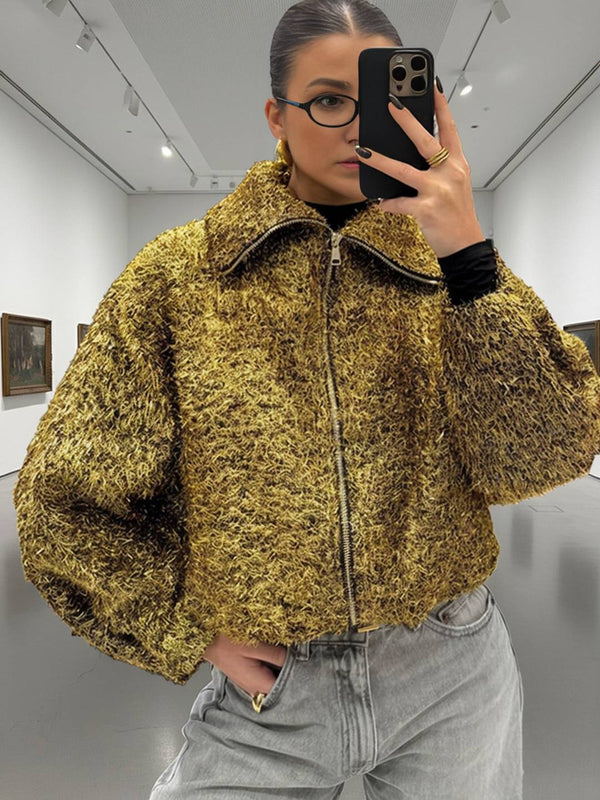 Cocolii court veste femme brillante pailletée fermeture éclair lurex hiver col revers ample vintage décontracté blouson
