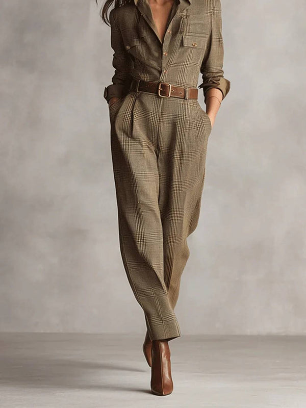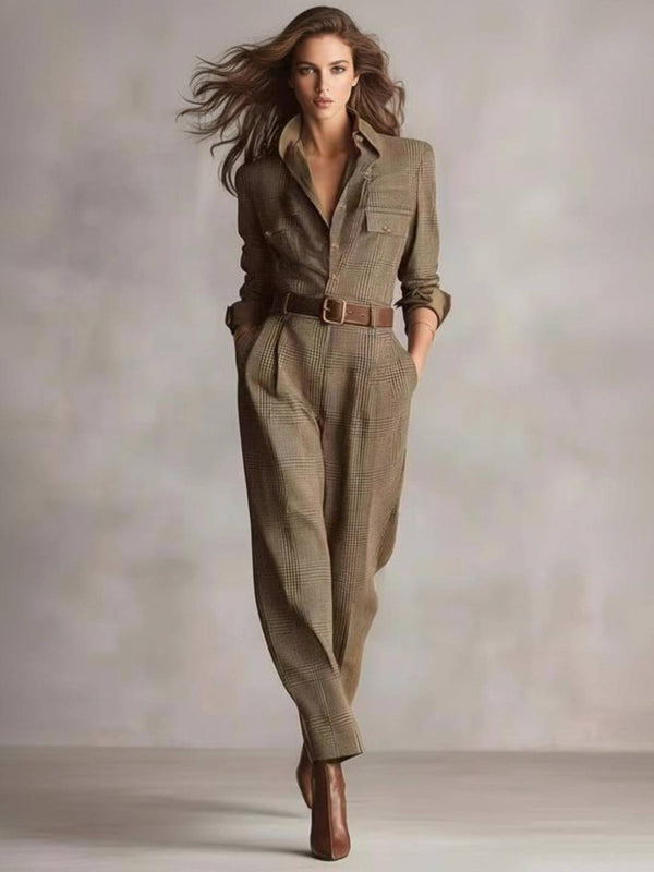 - Ce combinaison présente un design à carreaux classique, associé à des poches délicates et une ceinture, mettant en valeur un style vintage de collège. Fabriqué en polyester, il associe confort et durabilité, idéal pour le port quotidien au printemps et en automne. La conception simple à manches longues et la coupe ample apportent une sensation détendue à la manière d'un boyfriend tout en conservant une élégance raffinée. Que ce soit pour des cérémonies ou des sorties quotidiennes, il peut être facilement maîtrisé, soulignant un charme unique.