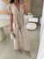 • Le design de cette combinaison est plein d'élégance et de mode. Tout d'abord, sa couture est très mince et peut bien montrer les courbes de figure du porteur sans perdre la sensation de confort. Le design à col en V ajoute non seulement des éléments sexy, mais allonge également les lignes du cou, ce qui rend le look global plus mince. La partie à manches courtes adopte un design ébouriffé, ajoutant une touche de douceur et de espièglerie, et ajoutant également une superposition au look général. La conception de la taille rend cette combinaison plus mince visuellement et met également en évidence la beauté tout en courbes de la taille. Le design des jambes en vrac rend le porteur plus libre lors du déplacement, et ajoute également la désinvolture et la désinvolture de l'aspect général. Cette combinaison convient à diverses occasions, que ce soit un trajet quotidien, une date ou une fête.
