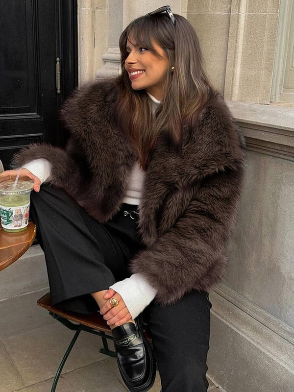 - Cette veste en fausse fourrure adopte un design ample et lâche, mêlant parfaitement élégance et style rétro. Le col rabattu ajoute une touche de sophistication, tandis que le matériau épais en fausse fourrure garantit chaleur et confort pendant l'hiver. Que ce soit pour des sorties quotidiennes ou des événements à la mode, cette veste vous fera briller. Elle s'associe facilement avec des tenues décontractées simples ou des robes de soirée élégantes, adaptée à diverses occasions. Le tissu est doux et délicat, offrant une expérience de port exceptionnelle.