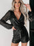 - Cette combinaison noire à paillettes est élégante et élégante, parfaite pour une variété d'occasions. Sa décoration unique en paillettes le fait scintiller sous les lumières, ce qui en fait un choix idéal pour une fête ou un dîner. Le design à manches longues ajoute de la chaleur tout en conservant une sensation globale de style. Le design à col en V montre non seulement l'élégance des femmes, mais ajoute également un élément sexy. Le design cintrant la taille met en valeur les courbes des femmes et rend la silhouette plus élancée. Le tissu est doux et confortable, a une bonne élasticité et respirabilité, est confortable à porter et ne se froisse pas facilement. Cette combinaison convient non seulement aux occasions formelles, mais peut également être portée de manière décontractée tous les jours, montrant la combinaison parfaite de mode et d'élégance.