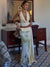 - Cette tenue montre la combinaison parfaite d'élégance et de mode. Le sommet adopte un design à col en V profond et un style sans dos, montrant la sexy et la confiance des femmes. Le fond est une longue jupe taille haute, avec des motifs floraux sur l'ourlet, ajoutant une atmosphère naturelle et artistique. La couleur globale est principalement blanche, donnant aux gens une sensation fraîche et pure. Le style de design de cette tenue est plus moderne et simple, tout en intègre également des éléments rétro tels que le col en V profond et le design sans dos, le rendant unique dans le monde de la mode. L'ajout de motifs floraux rend l'ensemble des vêtements plus artistique et plus personnel.