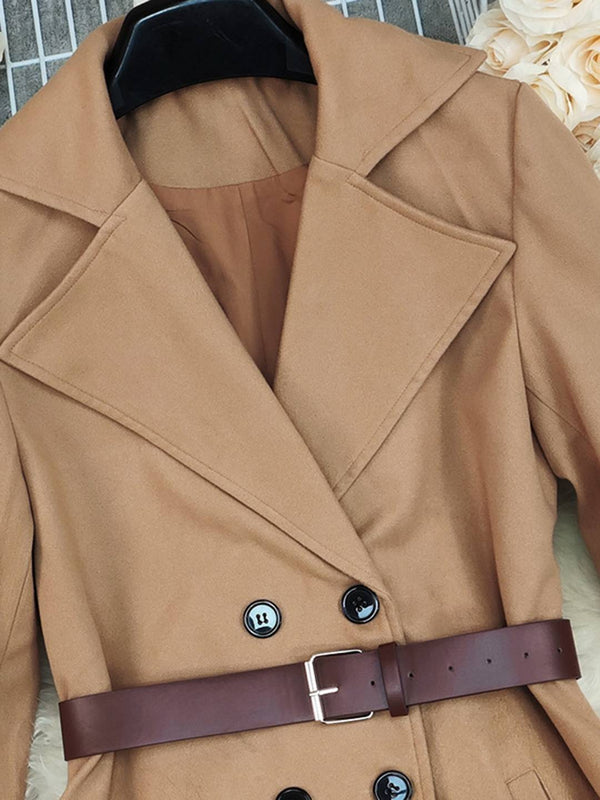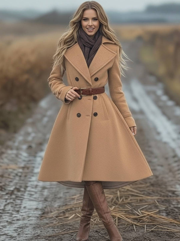 Cocolii longue manteau en laine femme double boutonnage poches ceinture col revers manches longues élégant vintage style trench