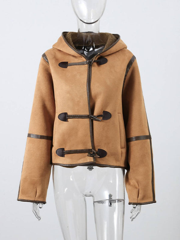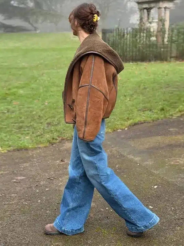 - Cette veste est dotée d'une doublure en laine de mouton et d'une couche extérieure en suède, offrant une combinaison parfaite d'élégance et de style rétro. La conception à boutonnage simple et la coupe ample assurent un confort optimal tout en ajoutant une touche de mode. Le col avec capuche offre non seulement de la chaleur mais aussi un élément distinctif à la tenue globale. Parfaite pour les sorties quotidiennes ou le style décontracté de rue, elle met en valeur le charme individuel.