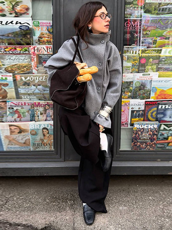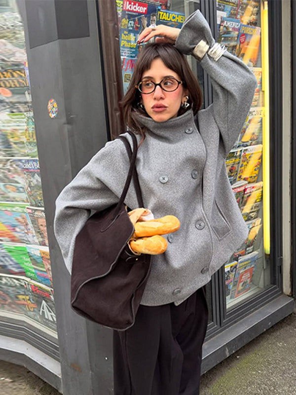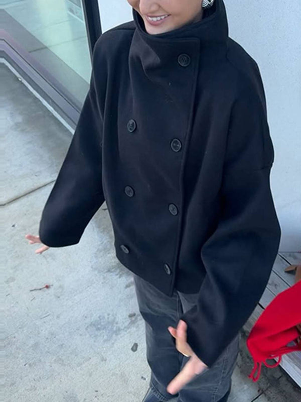 - Ce manteau à double boutonnage présente une conception de col montant classique, simple et élégante. Les boutons à double rangée sur le devant non seulement améliorent la superposition globale mais ajoutent également du plaisir à porter. La conception de manches longues amples et la coupe courte offrent de la chaleur sans sacrifier le style, idéal pour un usage quotidien en automne et en hiver. Fabriqué en tissu de polyester, il offre une sensation douce et confortable, facile à entretenir. Que ce soit avec des jeans ou des pantalons décontractés, il peut mettre en valeur un charme et une personnalité uniques.