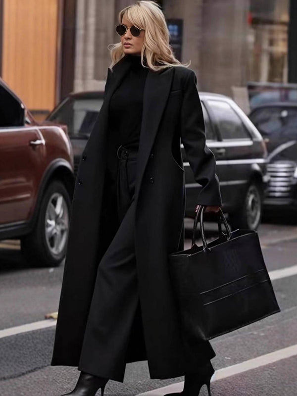 - Ce manteau de longueur cheville adopte un design minimaliste avec des lignes fluides, fusionnant parfaitement les esthétiques rétro et moderne. La conception à manches longues associée à un col rabattu ajoute une touche de formalité et de chaleur. Un ajustement ample assure un port confortable, idéal pour les sorties quotidiennes ou les occasions professionnelles. Fabriqué en tissu de polyester léger et chaud, il est facile d'entretien et dégage un sens de la mode. Associé à un pull-over à col roulé et à des pantalons droits, l'allure générale est simple mais élégante, soulignant l'élégance et la confiance des femmes urbaines.