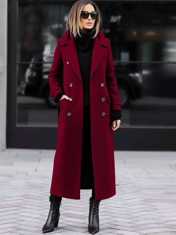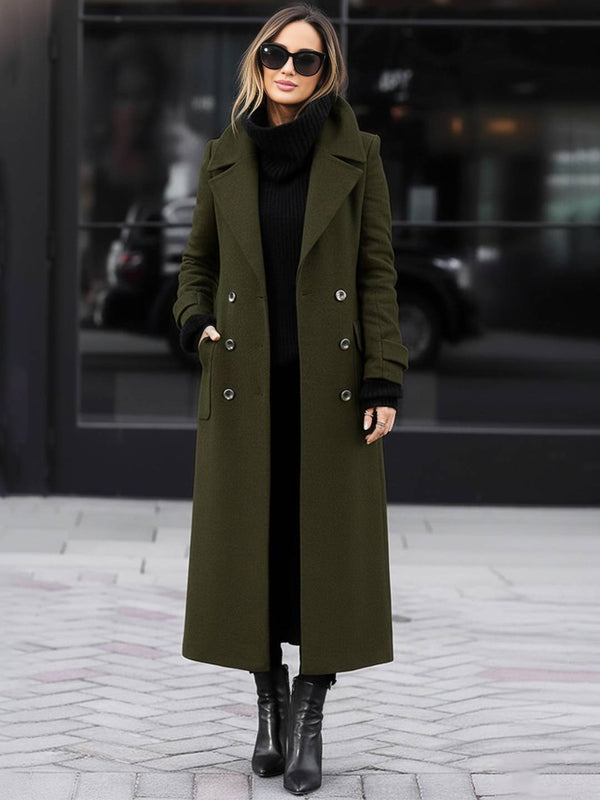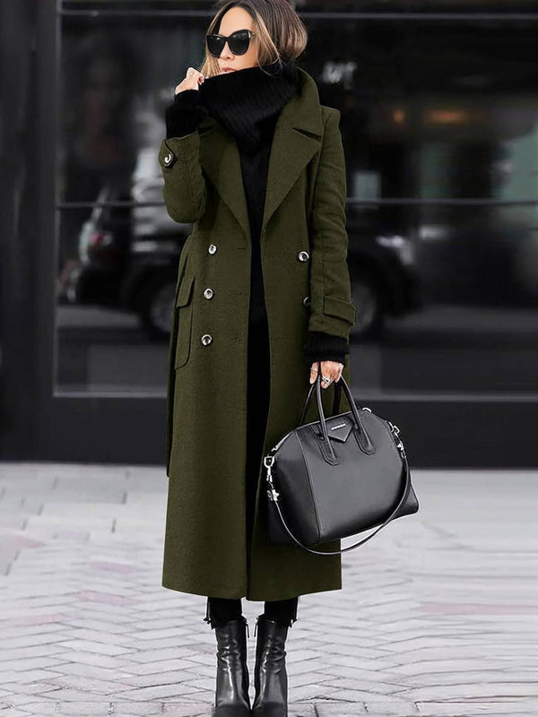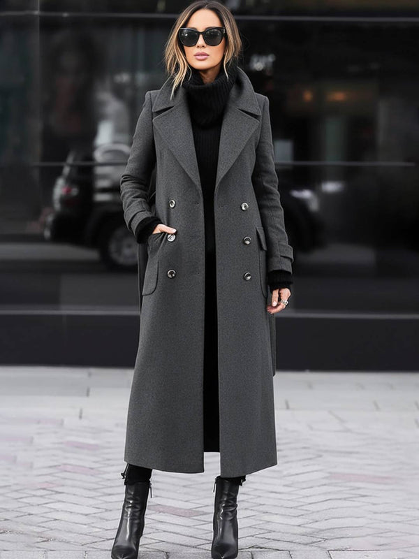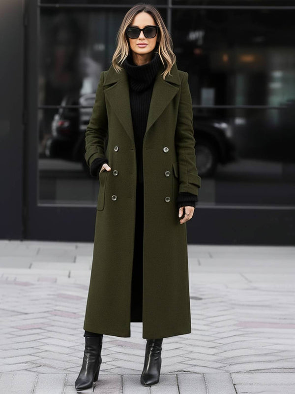 - Ce manteau en laine présente une conception à double boutonnage avec un col rabattu et des manches longues, mettant en valeur un style élégant et rétro. La longueur du manteau est modérée, offrant une chaleur efficace, tandis que la conception des poches augmente la praticité. Il peut être porté facilement pour les sorties quotidiennes ou les occasions formelles. Le tissu est épais et doux, offrant une expérience de port confortable. La conception globale est simple et généreuse, soulignant un sens de la mode.