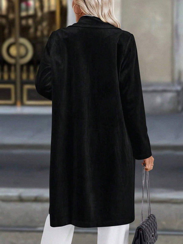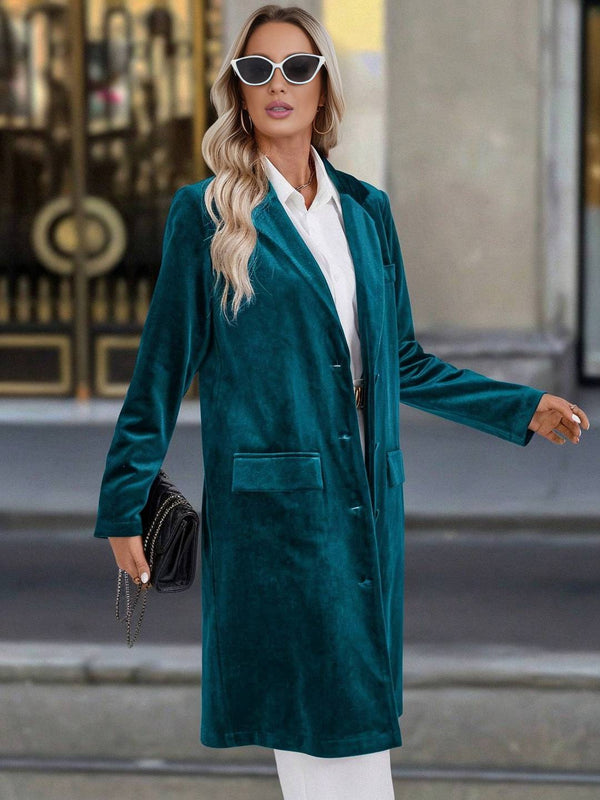 - Cette veste en velours adopte une conception à boutonnage simple avec un col rabattu et des poches, fusionnant parfaitement les styles vintage et modernes. Sa coupe ample offre non seulement un port confortable mais aussi le charme unique d'un style unisexe. Que ce soit pour des sorties quotidiennes ou des rassemblements de mode, cette veste vous fera briller. Le tissu de velours raffiné émet une douce lueur sous la lumière, ajoutant une touche d'élégance et de luxe. Associée à une chemise blanche simple et des pantalons taille haute, la tenue globale est minimaliste mais stylée, mettant en valeur la confiance et la sérénité des femmes urbaines.