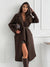 Cocolii mi-longue manteau en laine ceinture col revers femme élégant vintage décontracté chic veste classique