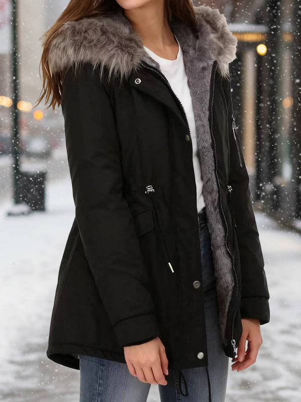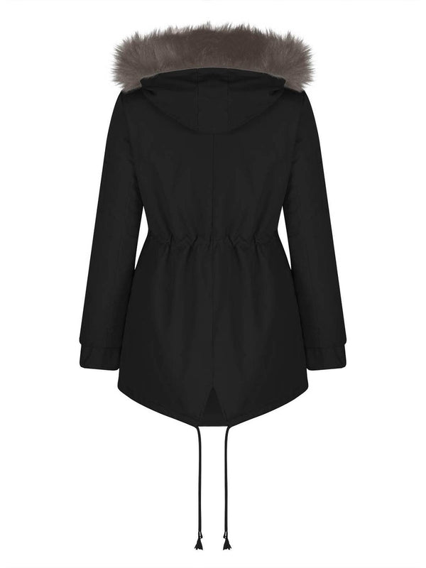 - Cette parka présente un design classique avec une doublure en fourrure offrant une chaleur ultime. La combinaison d'un col en fourrure et d'une capuche ajoute une touche rétro. Un système de fermeture double avec des boutons simples et une fermeture éclair assure une protection contre le vent. La conception du cordon de serrage à la taille moyenne permet un ajustement réglable, créant soit un ajustement moulant, soit un ajustement ample. La conception des poches est à la fois pratique et élégante, répondant aux besoins quotidiens. Le style global est simple et élégant, adapté à diverses occasions, mettant en valeur la mode et la personnalité.