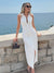 - Cette robe est élégamment conçue en blanc pour montrer un style simple et élégant. L'encolure de la jupe est conçue avec un col en V profond, qui non seulement montre le charme sexy des femmes, mais a également la dignité et la générosité. Le design sans manches permet au porteur de se sentir rafraîchi et confortable pendant les chaudes mois d'été, tout en mettant en évidence la beauté des lignes des épaules et des bras. La jupe est de longueur modérée, et la conception de la fente à l'ourlet augmente non seulement la commodité de la marche, mais ajoute également une beauté décontractée. Cette robe convient à une variété d'occasions, qu'il s'agisse d'un voyage quotidien, d'une date ou d'une fête, et peut être facilement contrôlé.
