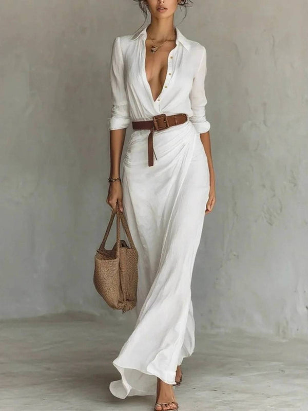 Cocolii robe chemise longue femme irrégulière bohème robe maxi v-cou ceinture manches longues décontracté ample de plage