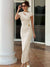 - Le design de cette robe mélange intelligemment l'élégance et la mode, montrant un charme unique. Les épaules sont conçues avec une conception asymétrique, formant un effet de rides naturelles, qui non seulement augmente la superposition visuelle, mais donne également au porteur un style personnalisé. La taille est décorée d'une fleur d'or exquise, qui devient la touche finale de toute la tenue et améliore le sentiment général de luxe et d'atmosphère artistique. Ce traitement détaillé est très respecté dans la tendance actuelle, ce qui montre non seulement l'ingéniosité du concepteur, mais satisfait également la poursuite des consommateurs de l'unicité et de la beauté. Du point de vue des caractéristiques fonctionnelles, cette robe utilise une couture étroite, qui décrit parfaitement la courbe du corps du porteur tout en maintenant le confort. Le choix du tissu est également très exquis, doux et a une certaine sensation de drapage, ce qui fait le balancement de la jupe dans le vent lors de la marche, ajoutant un peu d'agilité. De plus, le design sans manches convient non seulement à l'usure d'été, mais montre également la confiance et le calme du porteur dans diverses occasions formelles. Convient aux événements sociaux haut de gamme tels que les dîners et les mariages, cette robe peut faire ressortir le porteur parmi les nombreux invités et devenir l'attention de l'attention pour le public avec son design unique et son artisanat de production de haute qualité. Ce n'est pas seulement un vêtement, mais aussi un symbole d'attitude et de goût, permettant à chaque femme qui le choisit d'émettre une brillance charmante.