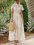 Cocolii robe longue dentelle boutonnage ceinture col chemise manches courtes femme élégant style tailleur décontracté