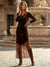 - Cette robe est fabriquée en velours, associée à un ourlet en dentelle délicate, mettant en évidence une élégance unique et des couches distinctives. La conception à manches longues ajoute de la chaleur et de la solennité, idéale pour diverses occasions formelles ou dîners. L'éclat du velours s'harmonise parfaitement avec la texture fine de la dentelle, créant un effet visuel luxueux mais doux. Que ce soit avec des talons hauts ou des bottes, elle peut être facilement portée, soulignant le charme féminin.