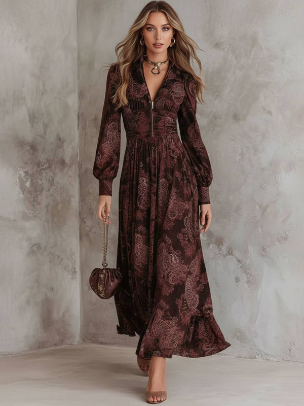 - Cette robe présente un design imprimé élégant, avec des manches ballon qui s'harmonisent parfaitement avec l'ourlet drapé, dégageant une charme vintage unique. Le décolleté en V ajoute une touche de sensualité et d'élégance, tandis que le détail de la fermeture éclair accentue le sens de la mode global. Que ce soit pour des cérémonies, des soirées ou des bals de fin d'études, cette robe vous fera briller. Fabriquée en tissu de polyester léger et confortable, elle convient aux tenues de printemps, idéale aussi bien pour les looks quotidiens que pour les occasions formelles.