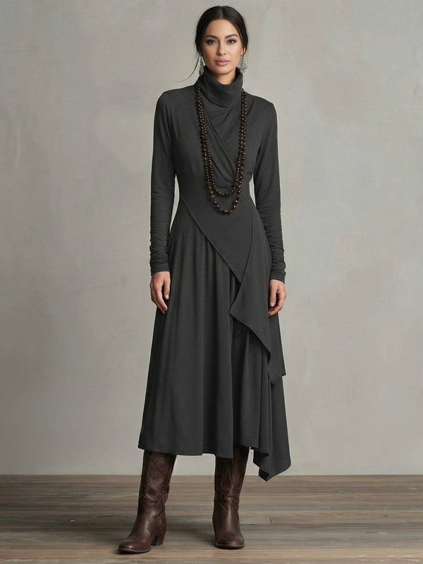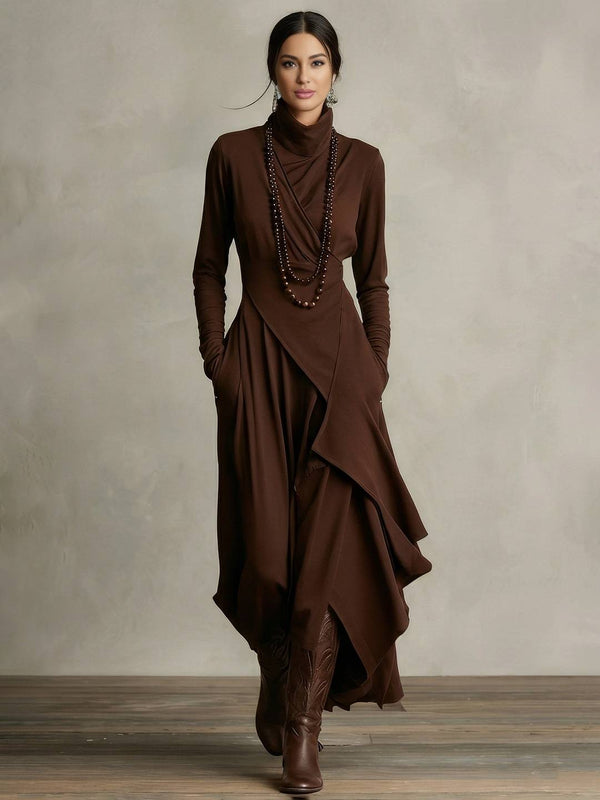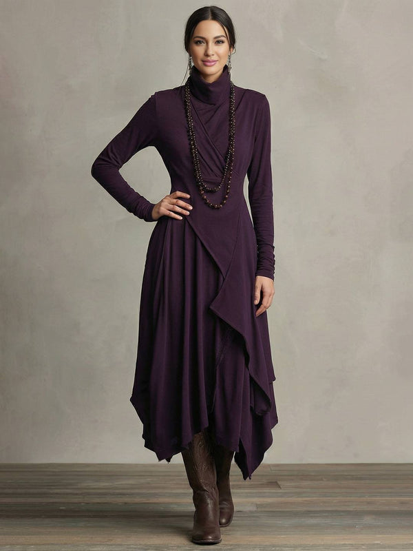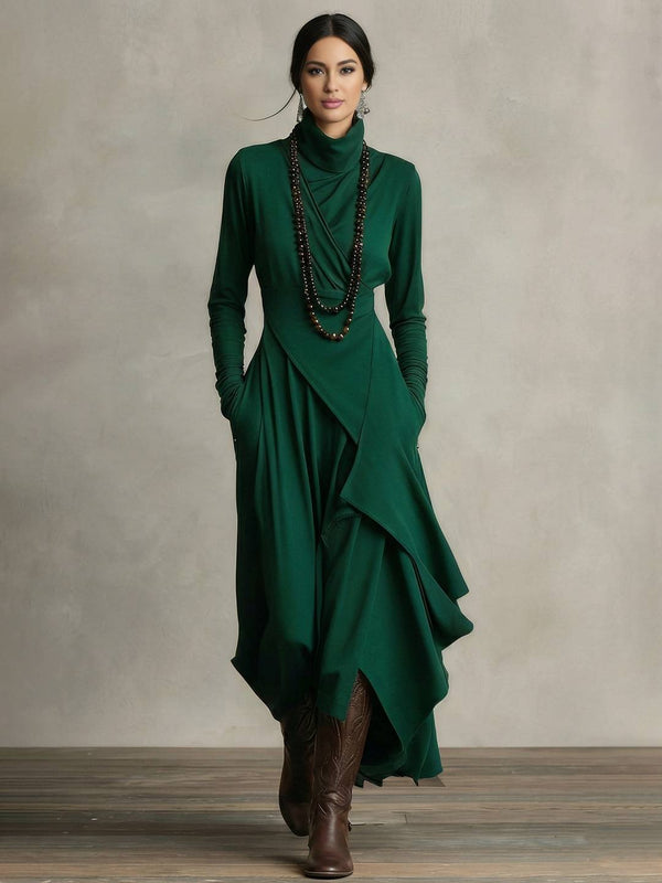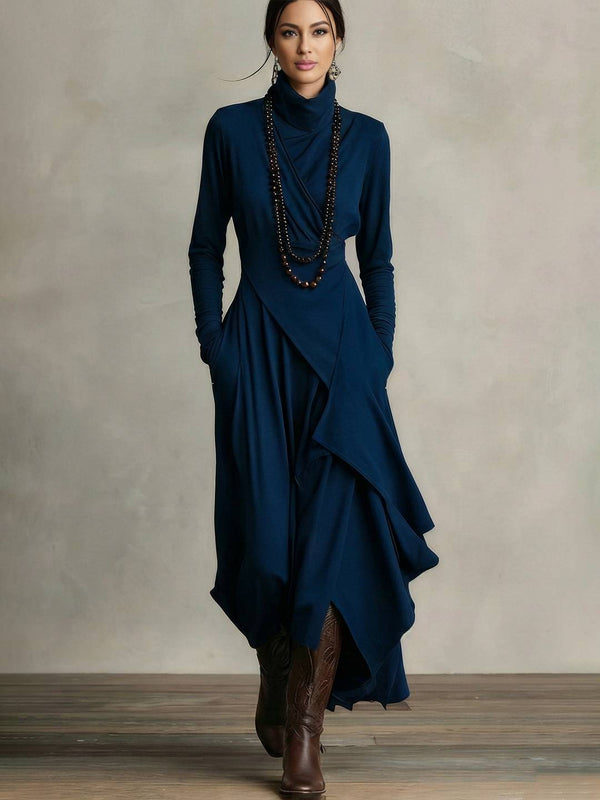 - Cette robe présente un col montant associé à une jupe irrégulière et drapée, mettant en valeur un mélange unique de style gothique et de charme rétro. Les manches longues avec des poignets élastiqués assurent le confort tout en ajoutant une touche de mode. Idéale pour les cérémonies, les soirées et les bals de fin d'études, elle dégage une élégance et une sophistication raffinées. Le tissu doux et fluide épouse parfaitement la silhouette, offrant une expérience de port exceptionnelle.