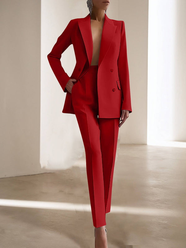 • Ce costume est conçu avec une simplicité élégante et raffinée, combinant un blazer à double boutonnage avec des pantalons fuselés et droits, dégageant une allure à la fois affirmée et gracieuse. Le blazer est taillé dans un style classique, avec des lignes fluides qui mettent parfaitement en valeur la silhouette et renforcent la présence générale. Les pantalons sont principalement conçus avec une taille haute, allongeant la ligne des jambes pour mettre en évidence des jambes longues et élancées. Fabriqué à partir de matériaux de haute qualité, le tissu offre une sensation douce et confortable, ainsi qu'une excellente tenue et une résistance aux plis, garantissant une expérience de port supérieure. Que ce soit pour des réunions professionnelles ou des occasions formelles, ce costume vous fera briller, soulignant votre professionnalisme et votre confiance en vous.