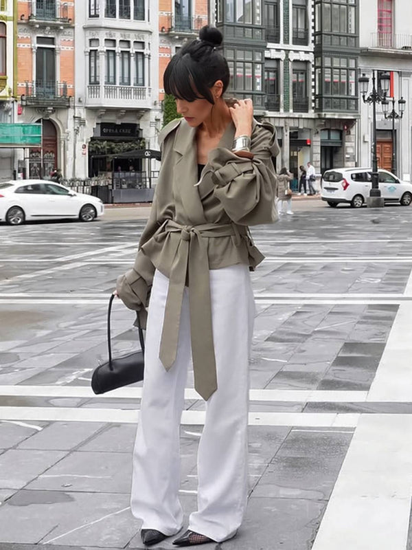 Cocolii trench court femme veste en suedine ceinture col revers manches longues élégant décontracté vintage mi-saison