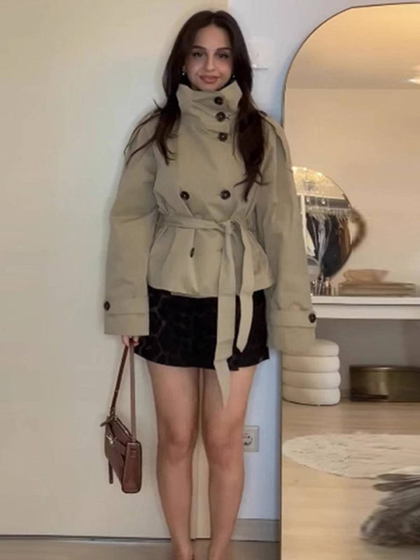 - Ce manteau de pluie présente un design unique, avec un col montant et des ornements d'épaule qui dégagent un style militaire prononcé. La conception à double boutonnage non seulement augmente la praticité mais aussi élève l'élégance globale. La ceinture à la taille souligne parfaitement les courbes de la taille, mettant en valeur l'élégance féminine. Les détails aux poignets et aux épaules renforcent encore l'apparence tridimensionnelle et en couches du vêtement. Que ce soit pour des sorties quotidiennes ou des occasions formelles, ce manteau vous fera briller. Fabriqué en coton de qualité supérieure, il est doux, confortable et respirant, idéal pour toutes les saisons.