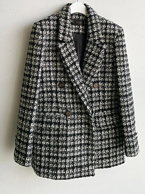- Cette veste en laine à carreaux adopte une conception boutonnée croisée, mélangeant parfaitement élégance et charme rétro. Le col rabattu raffiné et les détails des poches ajoutent une touche de mode, tandis que le tissu en polyester assure un confort optimal et une facilité d'entretien. Que ce soit pour le travail ou les sorties quotidiennes, elle peut être portée avec aisance. Sa coupe ajustée met en valeur les courbes du corps, mettant en évidence la féminité. Associez-la à des sous-vêtements simples ou des jupes pour créer divers styles, idéale pour les saisons printemps, automne et hiver.