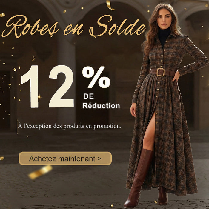 Cocolii robe longue en carreaux suedine poches ceinture col montant manches longues femme décontracté vintage cérémonie